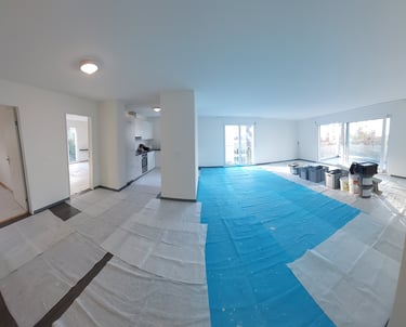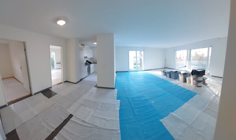 Dank exaktes Abdecken, bleibt der Boden ohne Farbspritzer