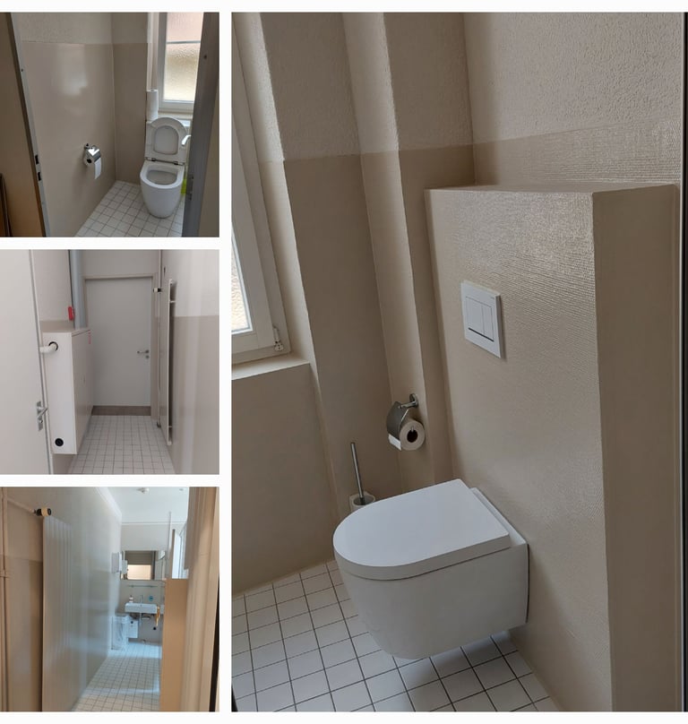 Fugenloses Bad: Spezialspachtel und Beschichtung auf bestehenden Platten – modern, pflegeleicht und langlebig.